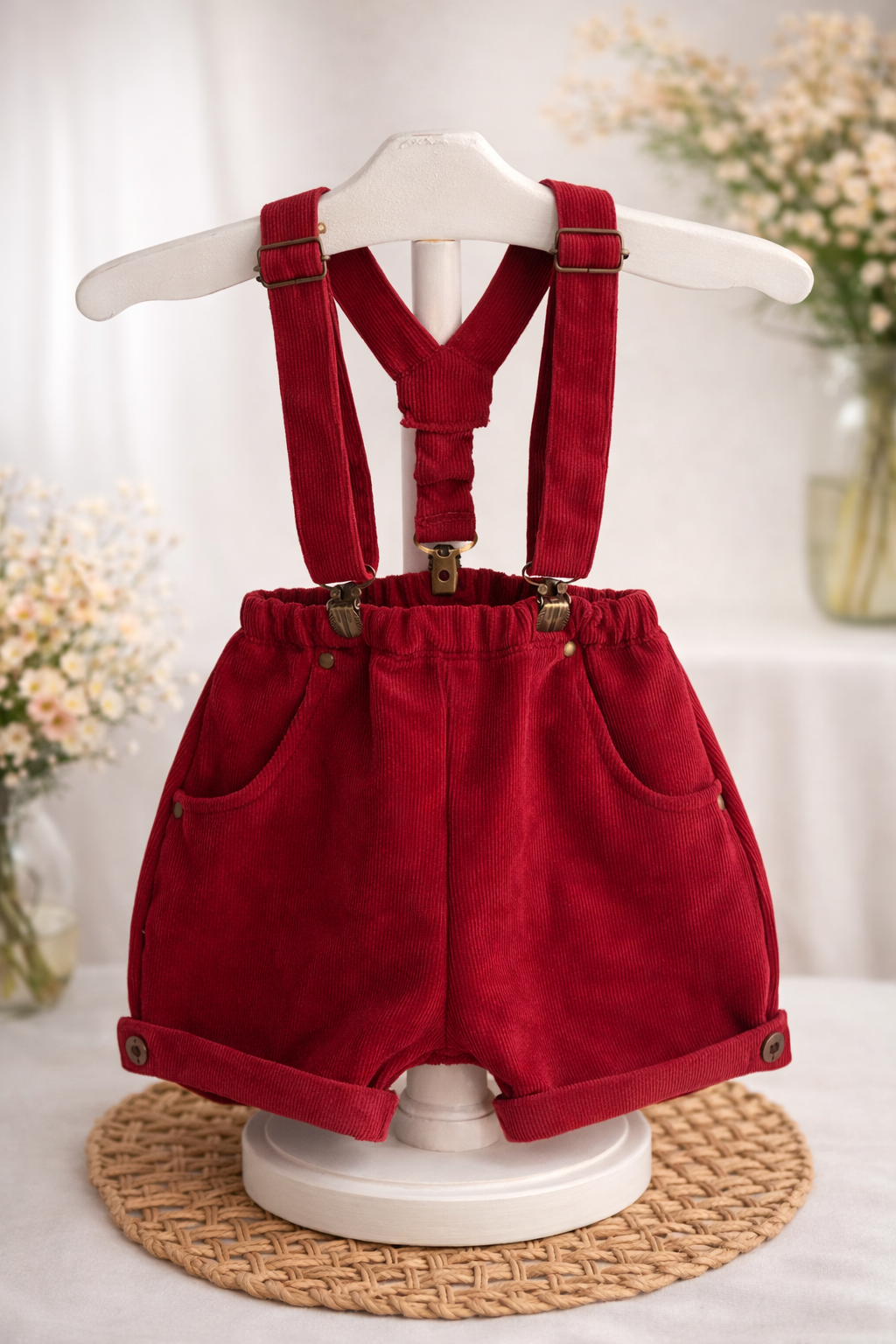 Bermuda com Suspensório Veludo Cotelê Vermelho