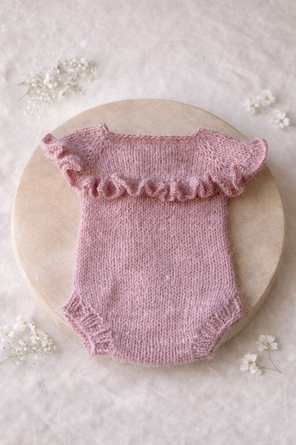 O Body Babadinho Eloá Rose é confeccionado em tricô manual, com fio tipo angorá, extremamente macio ao toque e com leve efeito felpudo que deixa a peça ainda mais especial.