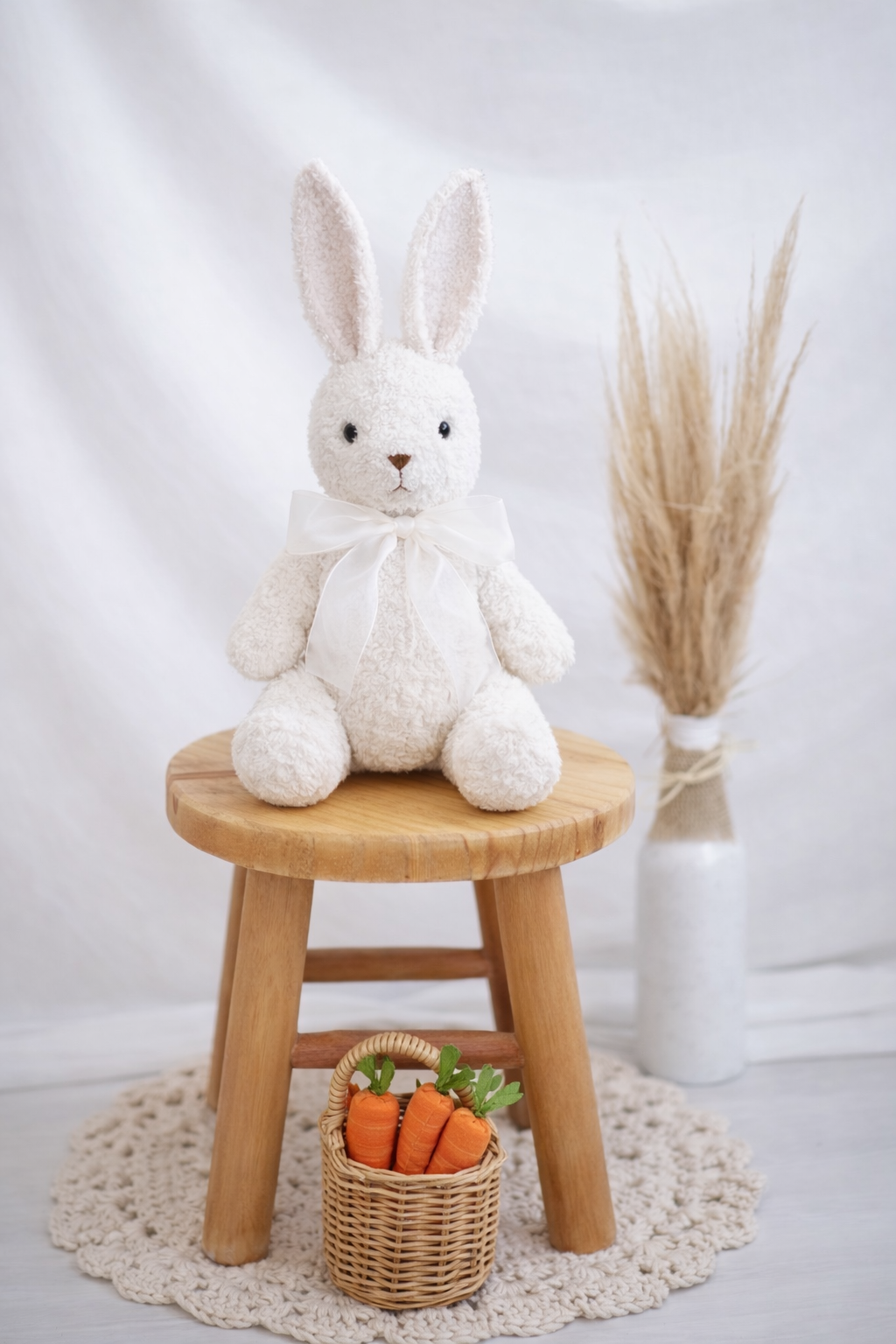Este coelho de pelúcia é a escolha perfeita para fotógrafas que desejam enriquecer suas produções com um acessório encantador e de qualidade.