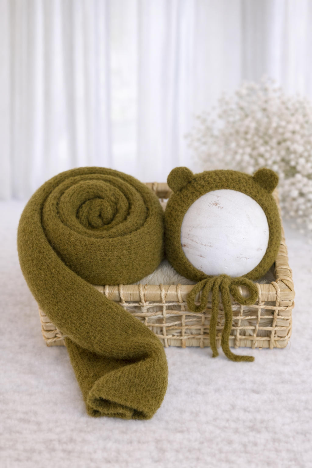 Conjunto Wrap e Touca Ursinho Comfy Oliva