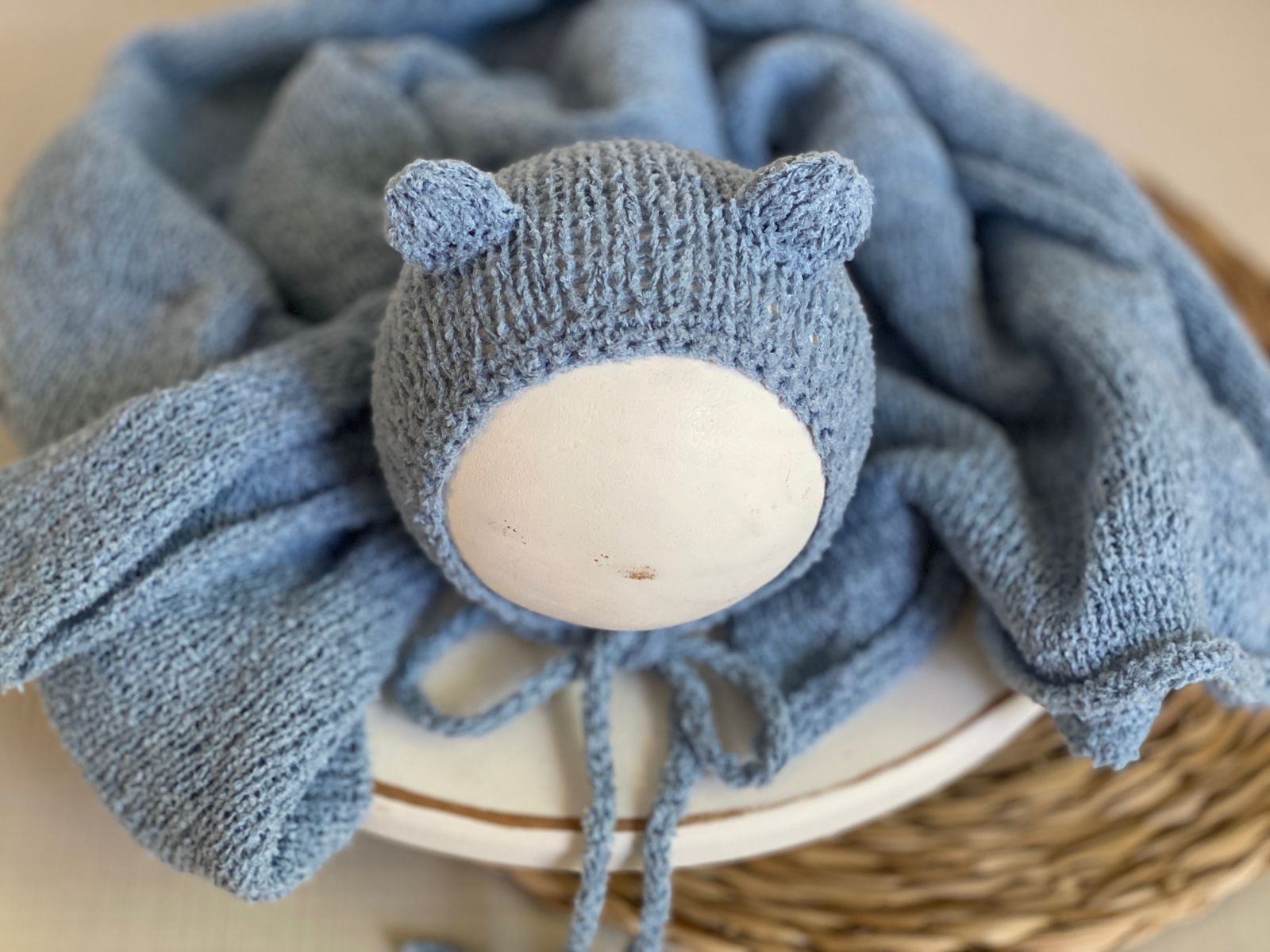 O wrap possui um toque leve e agradável, enquanto a touca de ursinho adiciona um detalhe lúdico e irresistível, perfeito para composições clássicas e afetivas.