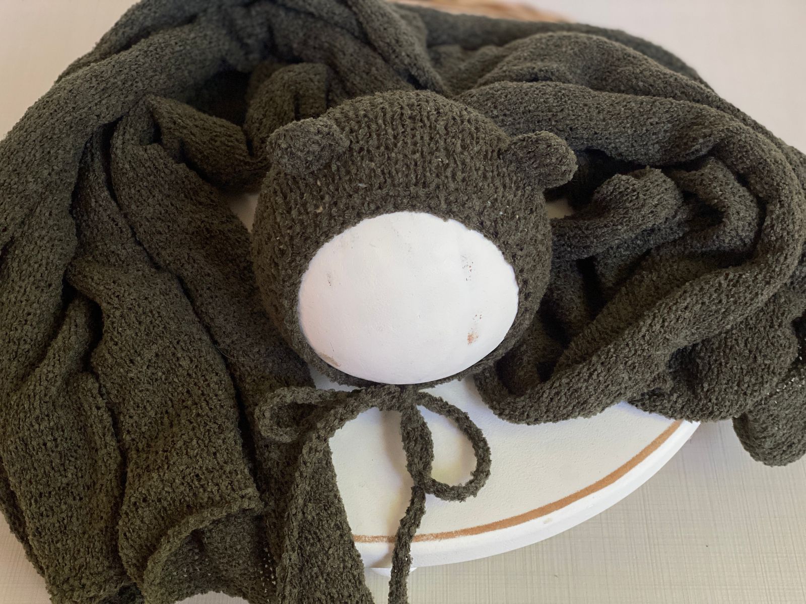 O wrap possui um toque leve e agradável, enquanto a touca de ursinho adiciona um detalhe lúdico e irresistível, perfeito para composições clássicas e afetivas.