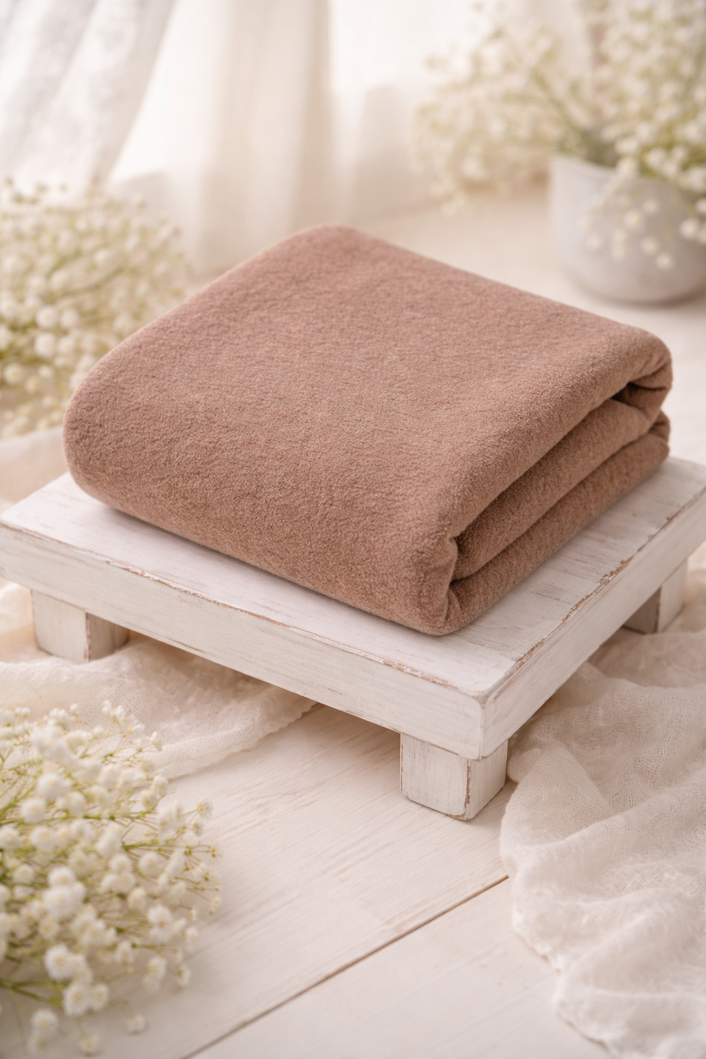 Com material macio e de alta qualidade, a manta oferece uma textura suave que cria o fundo perfeito, valorizando a beleza do bebê e garantindo uma composição elegante e acolhedora.