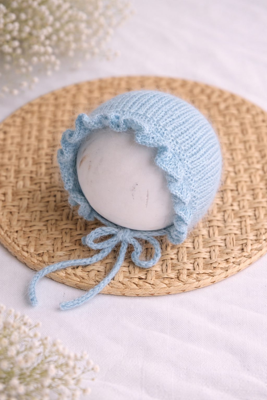 A Touca Babadinho Eloá é confeccionada em tricô manual com fio tipo angorá, extremamente macio e com leve efeito felpudo que traz suavidade e um acabamento encantador.