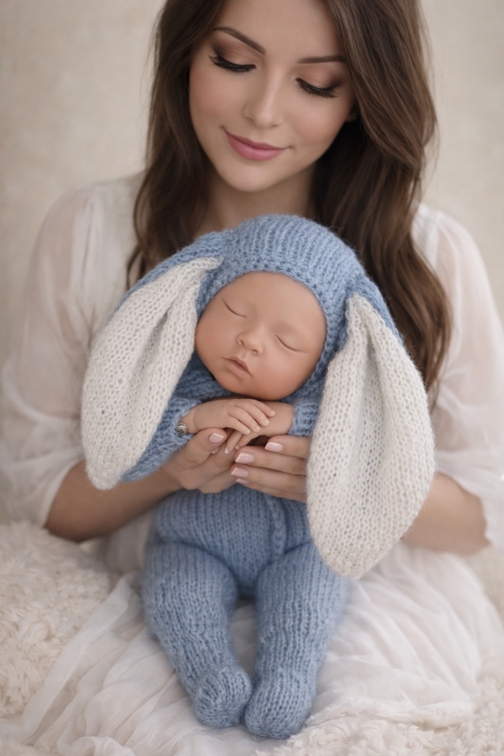 O fio mohair oferece textura delicada, caimento leve e conforto ideal para a pele sensível dos recém-nascidos. A touquinha com orelhinhas completa o visual com um toque lúdico e irresistível, transformando o ensaio newborn em uma experiência encantadora.
